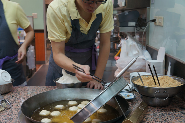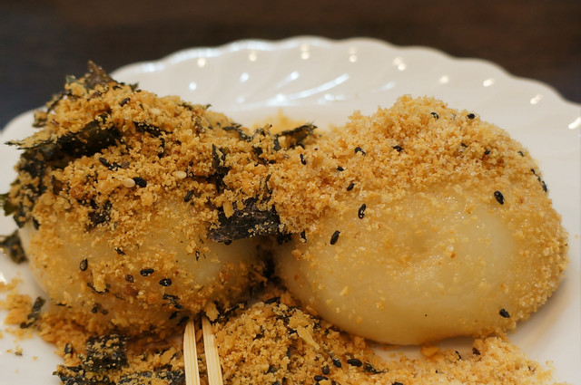 起鍋滴乾後再裹上一層花生粉好吃的燒麻糬就上桌囉~